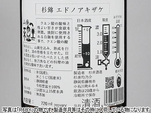 杉錦 山廃純米 エドノアキザケ 720ml:R6BY
